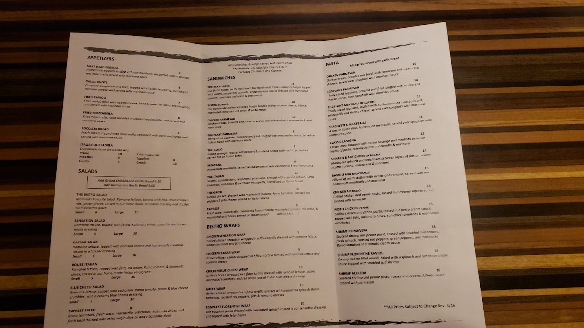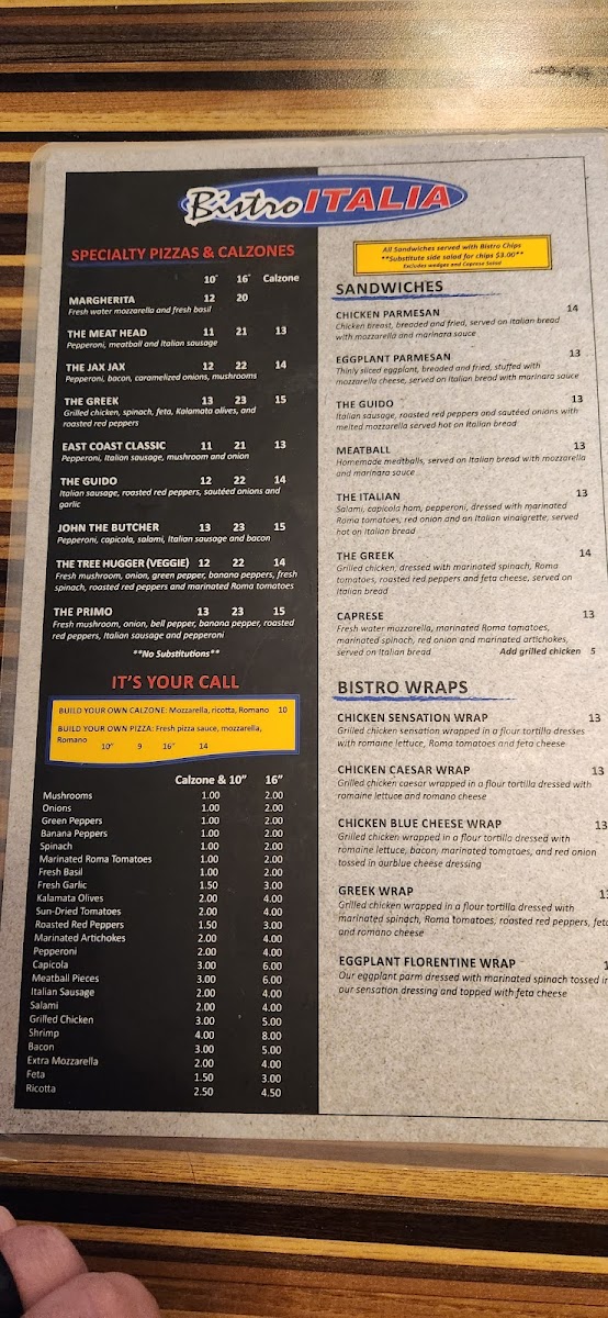 Bistro Italia Menu